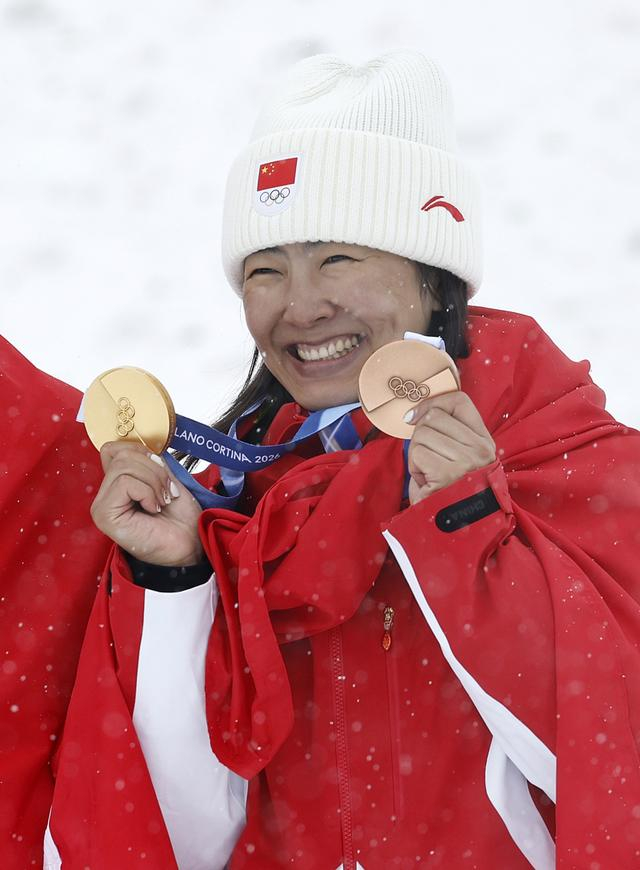 2026年2月22日,中国体育代表团成员、自由式滑雪运动员徐梦桃在闭幕式后。 新华社记者 王楷焱 摄上个月落幕的米兰冬奥会上,米兰冬奥会中国代表团最终以 5 金 4 银 6 铜收官,创造境外参加冬奥会历史最好成绩,15 枚奖牌数也追平北京冬奥会的主场纪录。其中,面对众多比自己年轻几代的顶尖选手,徐梦桃凭借完美一跳锁定金牌,成为中国雪上项目历史上首位全满贯获得者。